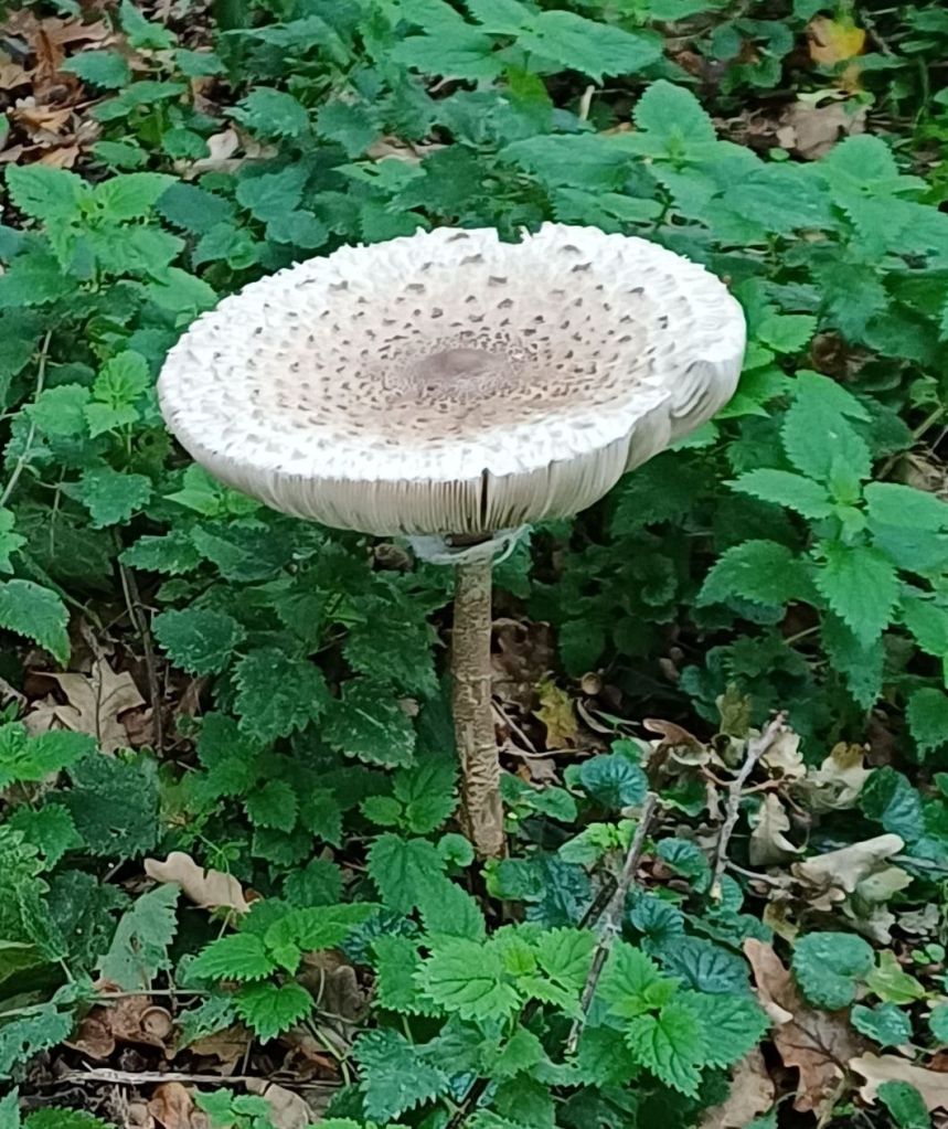 They tend to be in season from June to September and are often found in open woods, amoungst ferns. The parasol mushroom which I found was alone, which can happen, but they often are found in rings (Wild Food UK, 2017). These rings are formed due to the way the Mycelium grows underground, which starts in a single point and grows outwards in a circular patern, as it searchs for more nutrience, which therefore leads to the fruting bodies appearing above ground in a circular ring (Woodland Trust, 2025).
