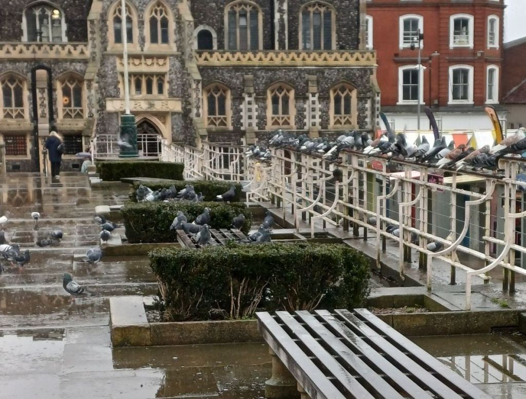 Recently within Norwich city centre, where I got these photos, the council has been taking action to try and get rid of the pigeon flock that lives around the city centre market. Some of these strategies were getting a hawk and planning fines for bird feeding. However, these strategies have faced many backlash from the public, with thousands of people signing petitions, wanting the pigeons to just be relocated instead of killed (Devlin. L, 2026).